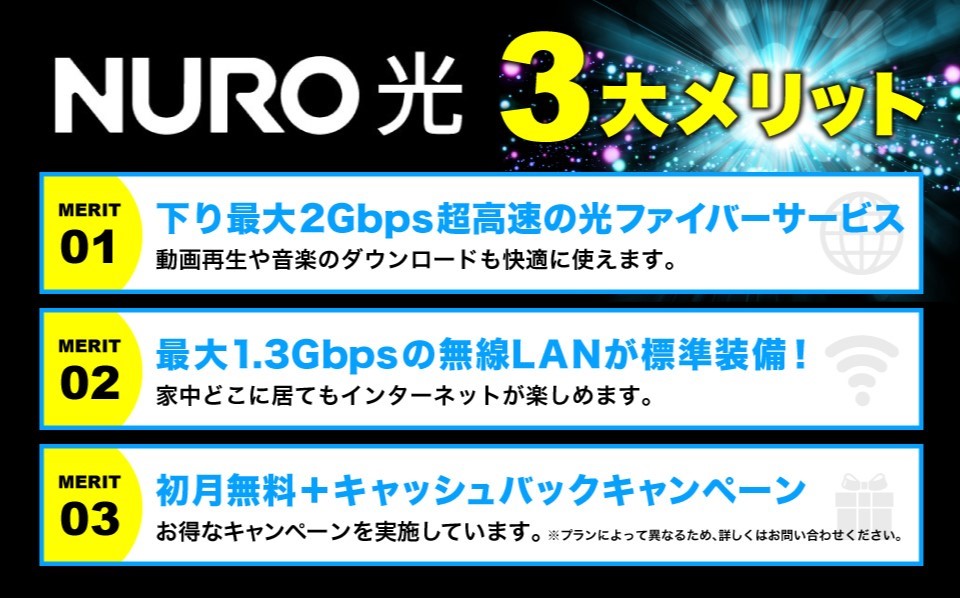 NURO光は下り【最大2Gbps】の超高速ファイバーサービスです。